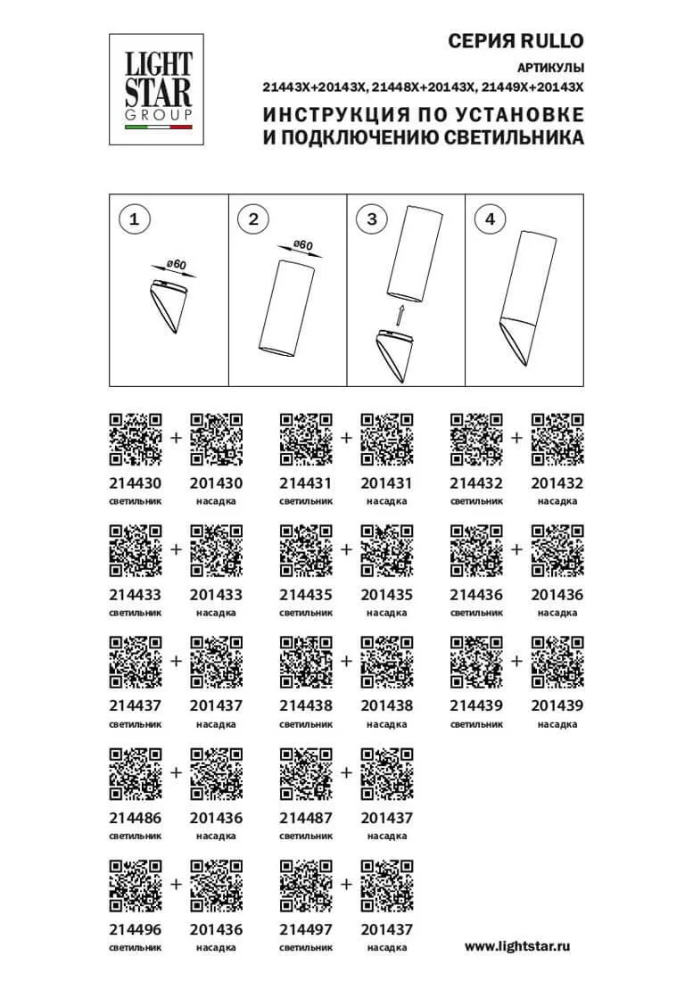 Насадка торцевая Lightstar Rullo 201436 купить в Владимире по лучшей цене