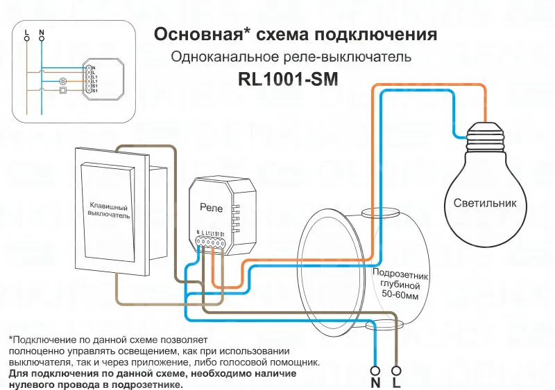 Wi-Fi реле-выключатель одноканальное Denkirs 1x2300Вт/250Вт для LED RL1001-SM купить в Владимире по лучшей цене
