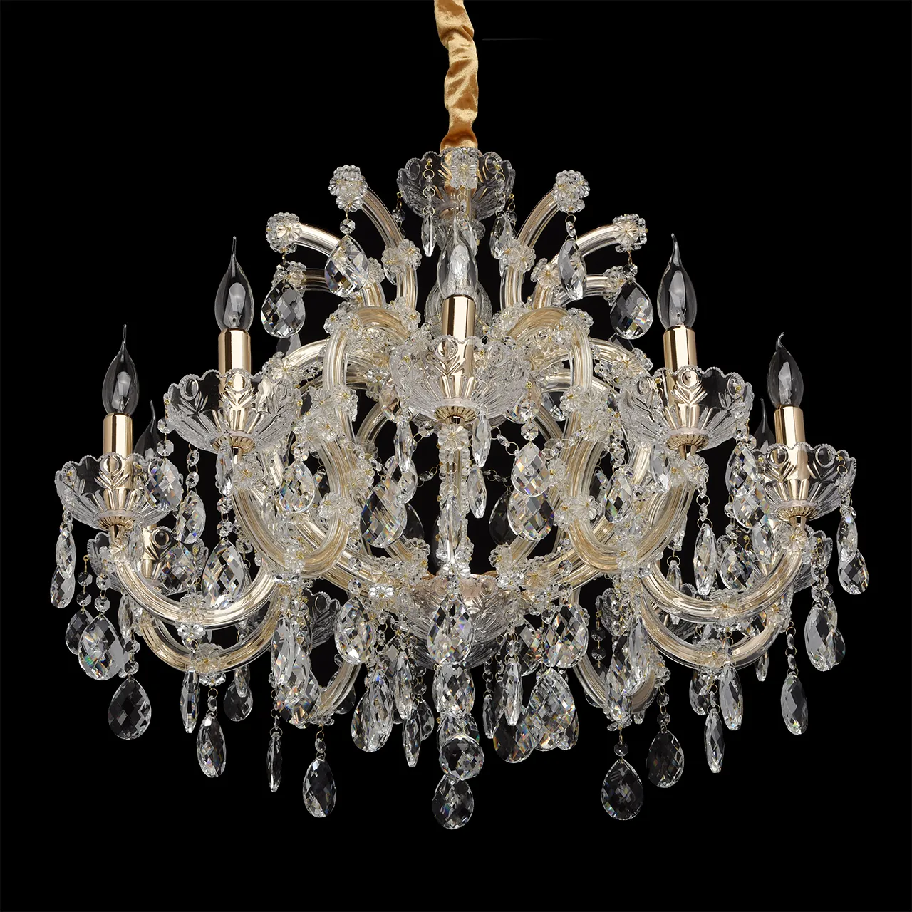 Металлическое основание цвета золота, основание из прозрачного гутного стекла, декоративные подвески