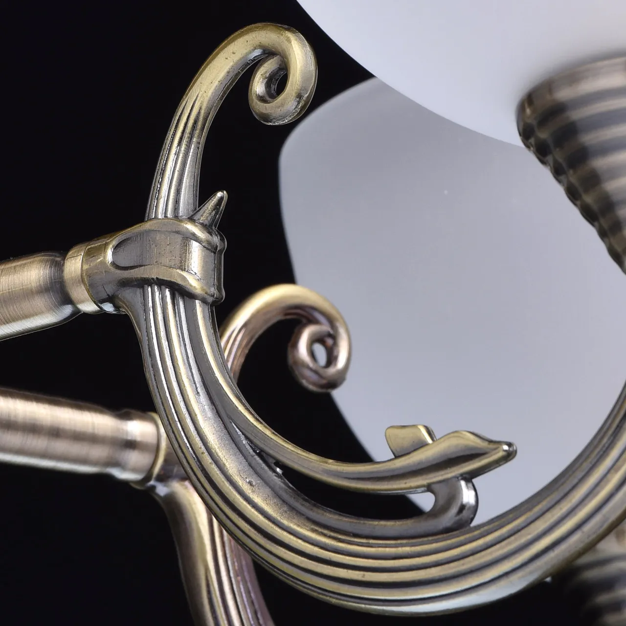 Алюминиевое основание, плафоны из матового стекла.