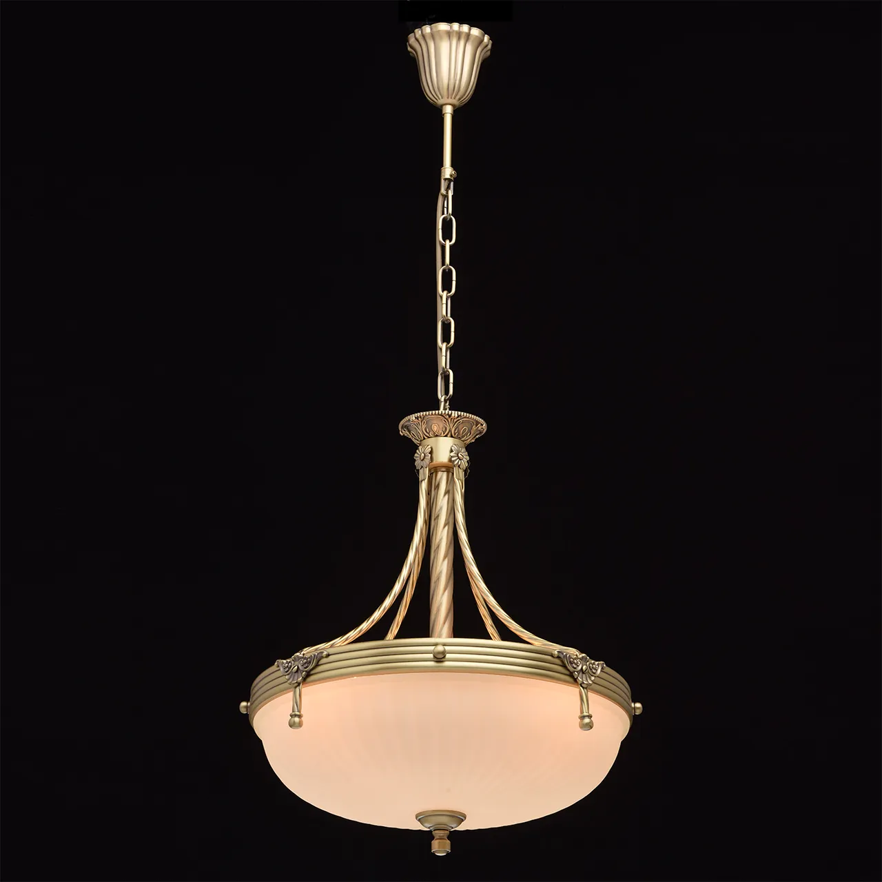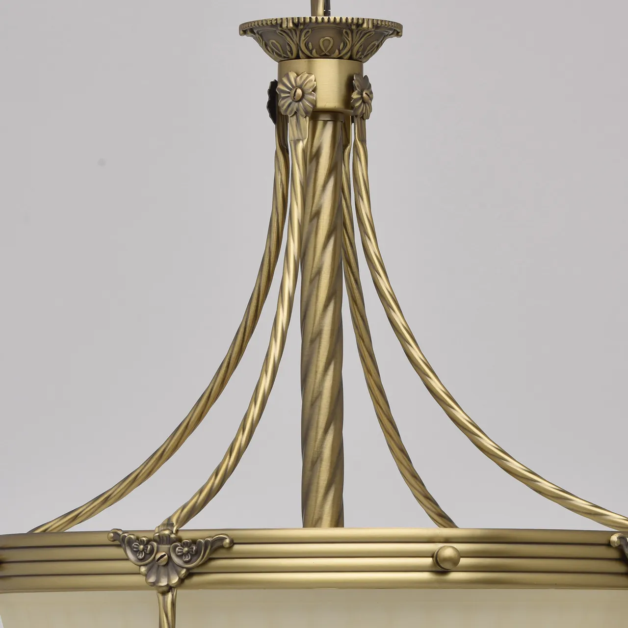 Алюминиевое основание цвета античной бронзы, стекляный плафон цвета ванили.